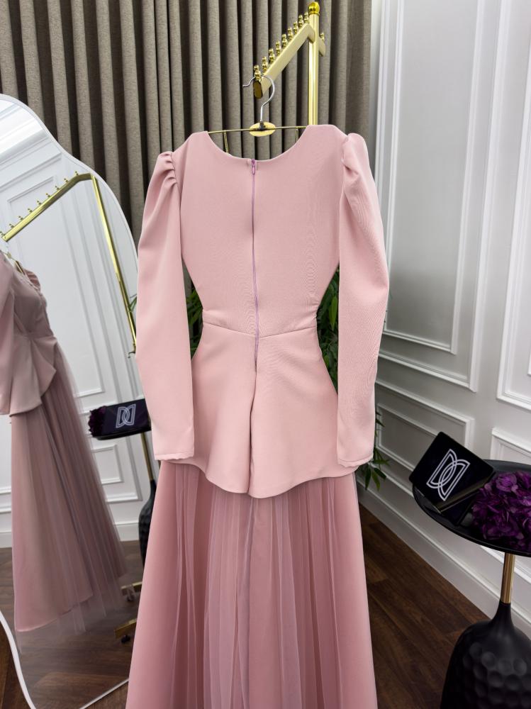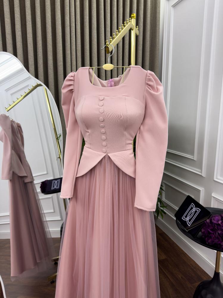 فستان باربي بأكمام طويلة وتنورة من التل, مناسب للأعياد والحفلات والمناسبات الخاصة .