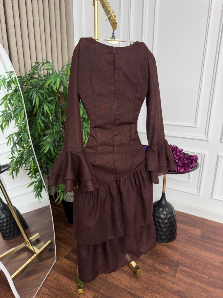 فستان بني بطبقات وأكمام كشكش لإطلالة مميزة وأنيقة