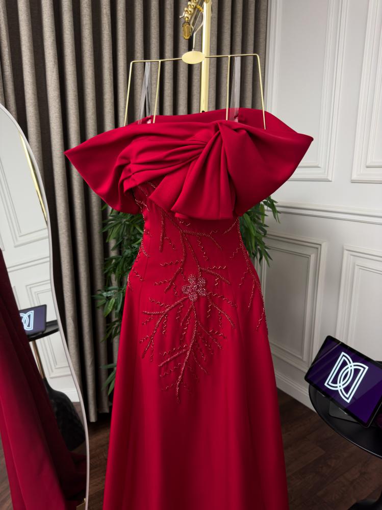 فستان سهرة باربي الأحمر مناسب لكل المناسبات، بقصة صدر عصرية وزخارف فصوص وكرستال تمنحك إطلالة أنيقة وساحرة.