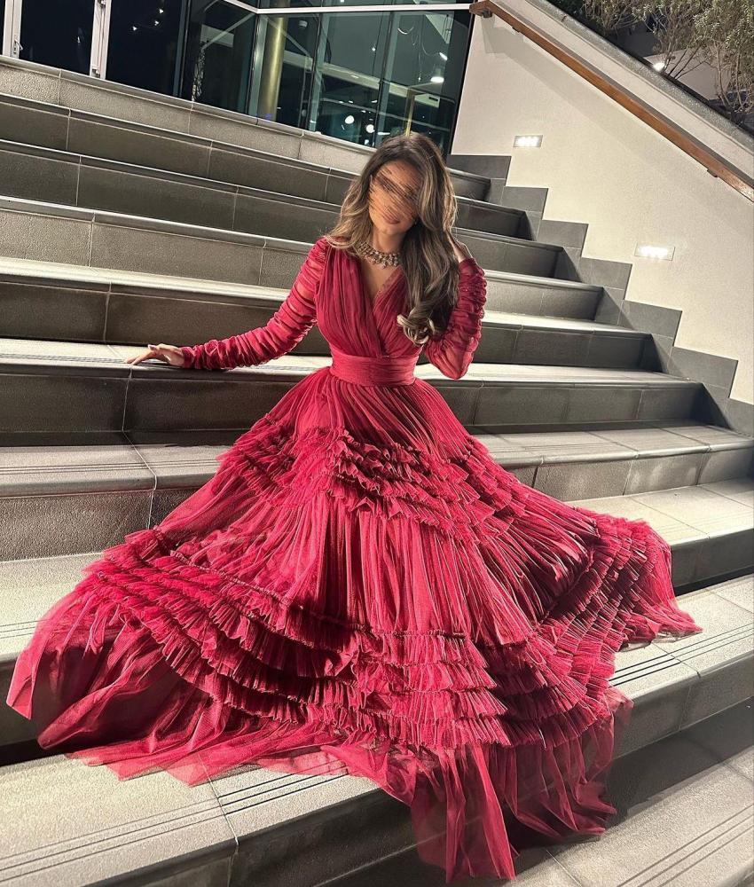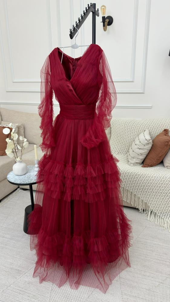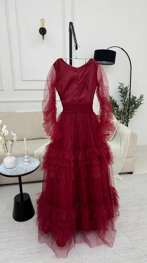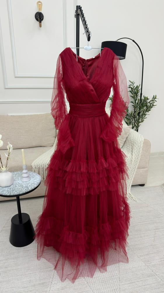 فستان سهرة تل طبقات بتصميم راقي ورائع .