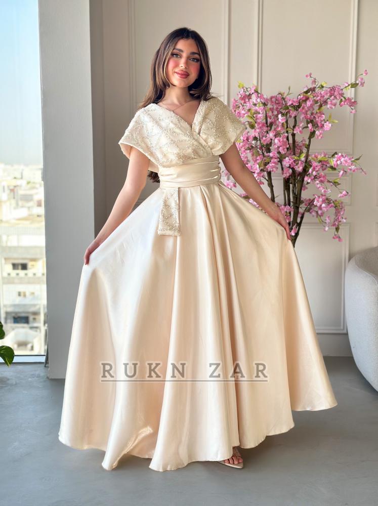 خامة القماش : ميكادو لامع راقي باللون السكري .