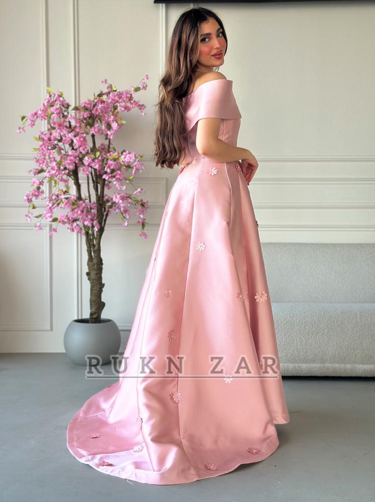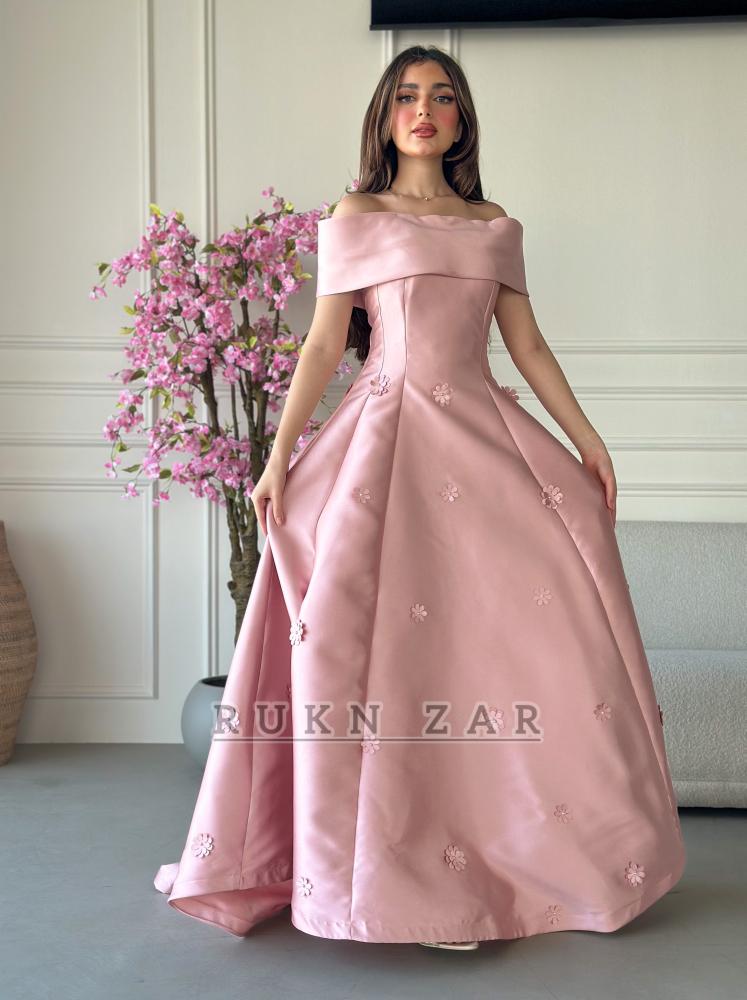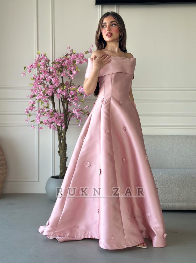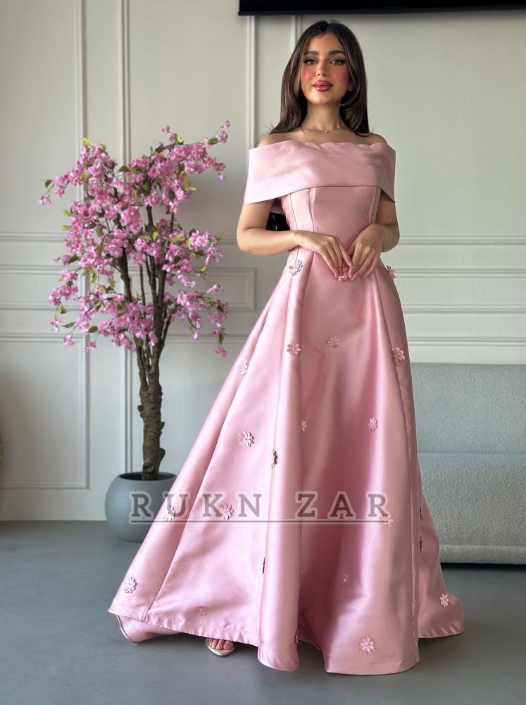 فستان سهرة ميكادو مزين بالورود بقصة صدر انيقه